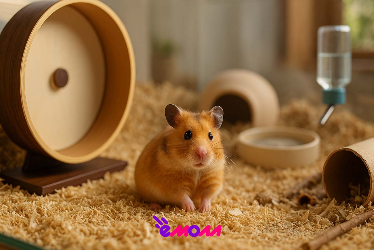 - Диаметр колеса: сирийский 27–30 см; карликовые 20–22 см. Тихий, сплошной беговой диск/поверхность, без перекладин/решётки.