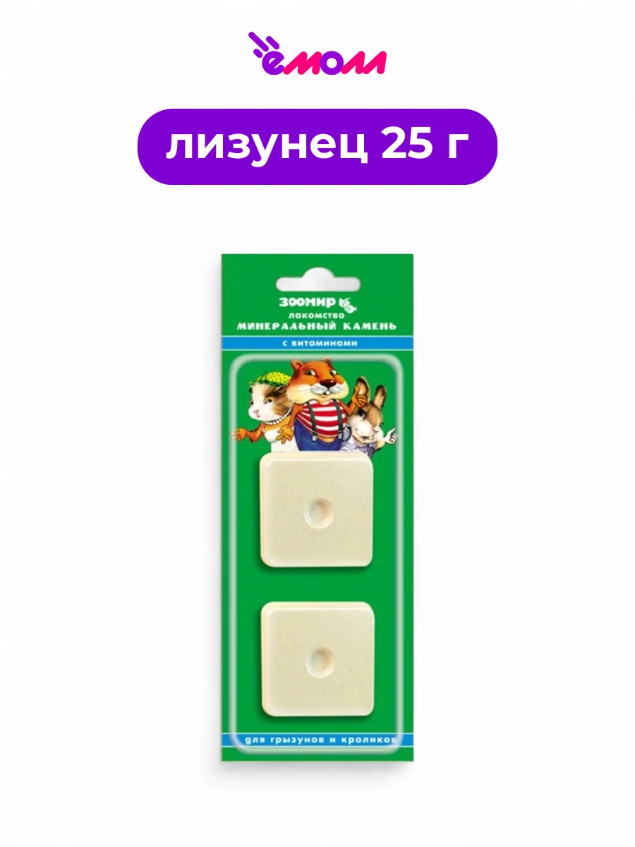 Зоомир минеральный камень для грызунов и кроликов с витаминами A D3 E и группы B 2 шт по 25 г
