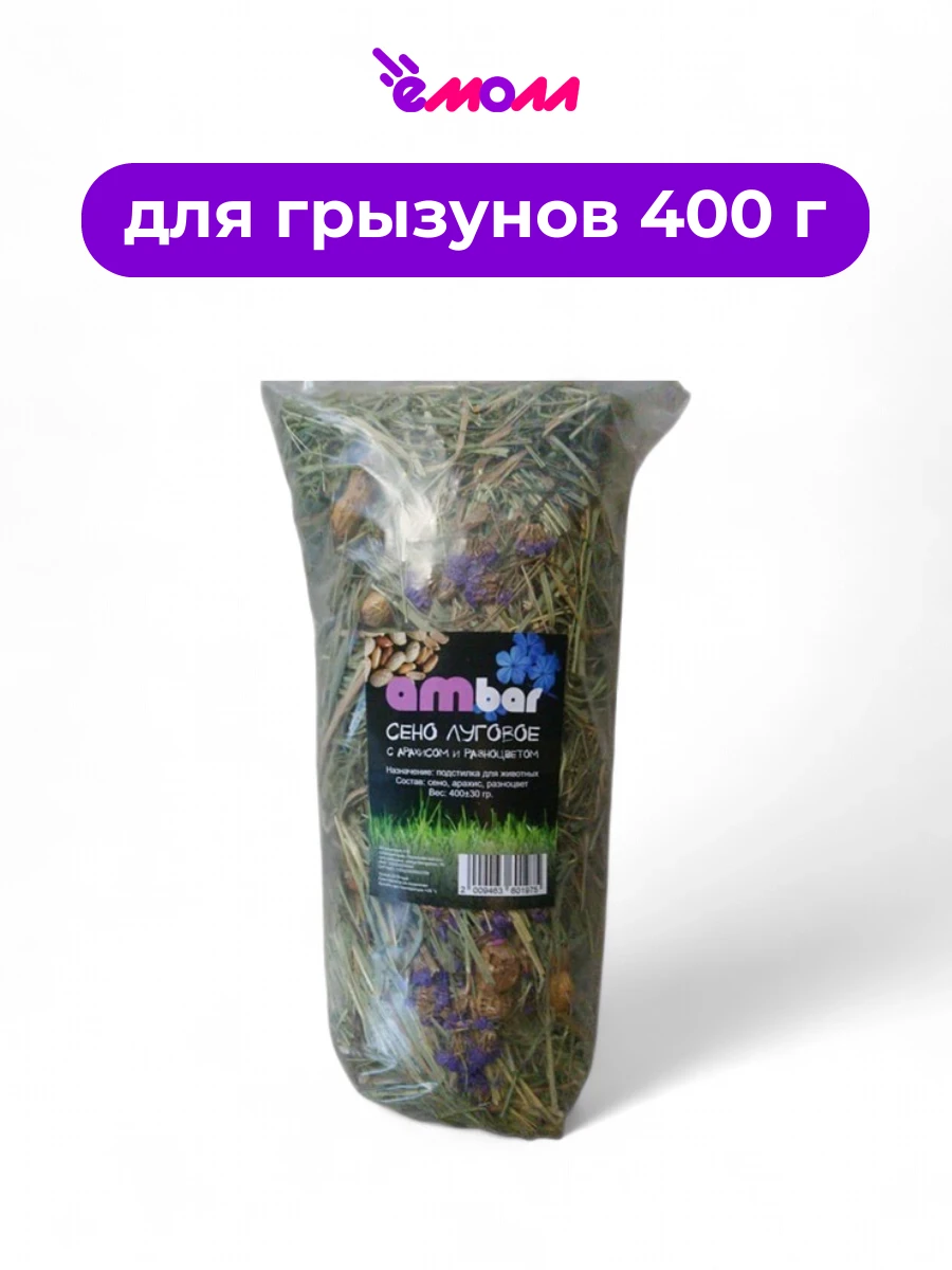 Сено "AmbarAltai" с разноцветным васильком и арахисом — это натуральный корм для грызунов, обогащённый полезными добавками. В отличие от стандартных моделей, это сено содержит лепестки разноцветного василька и кусочки арахиса, что делает его не только питательным, но и привлекательным для питомцев.