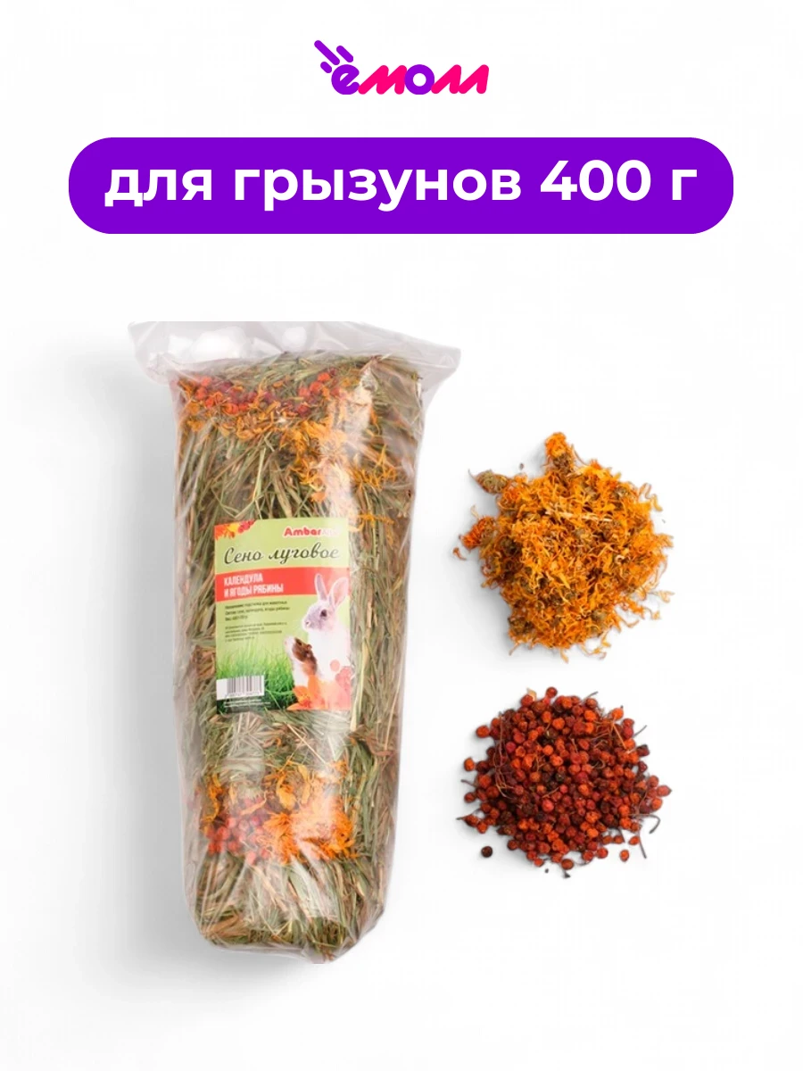 Сено "AmbarAltai" с календулой и ягодами рябины — это натуральный продукт, предназначенный для грызунов и кроликов. Бережно высушенное на солнце, оно сохраняет максимальное количество витамина D и кальция, необходимых для здоровья питомцев.