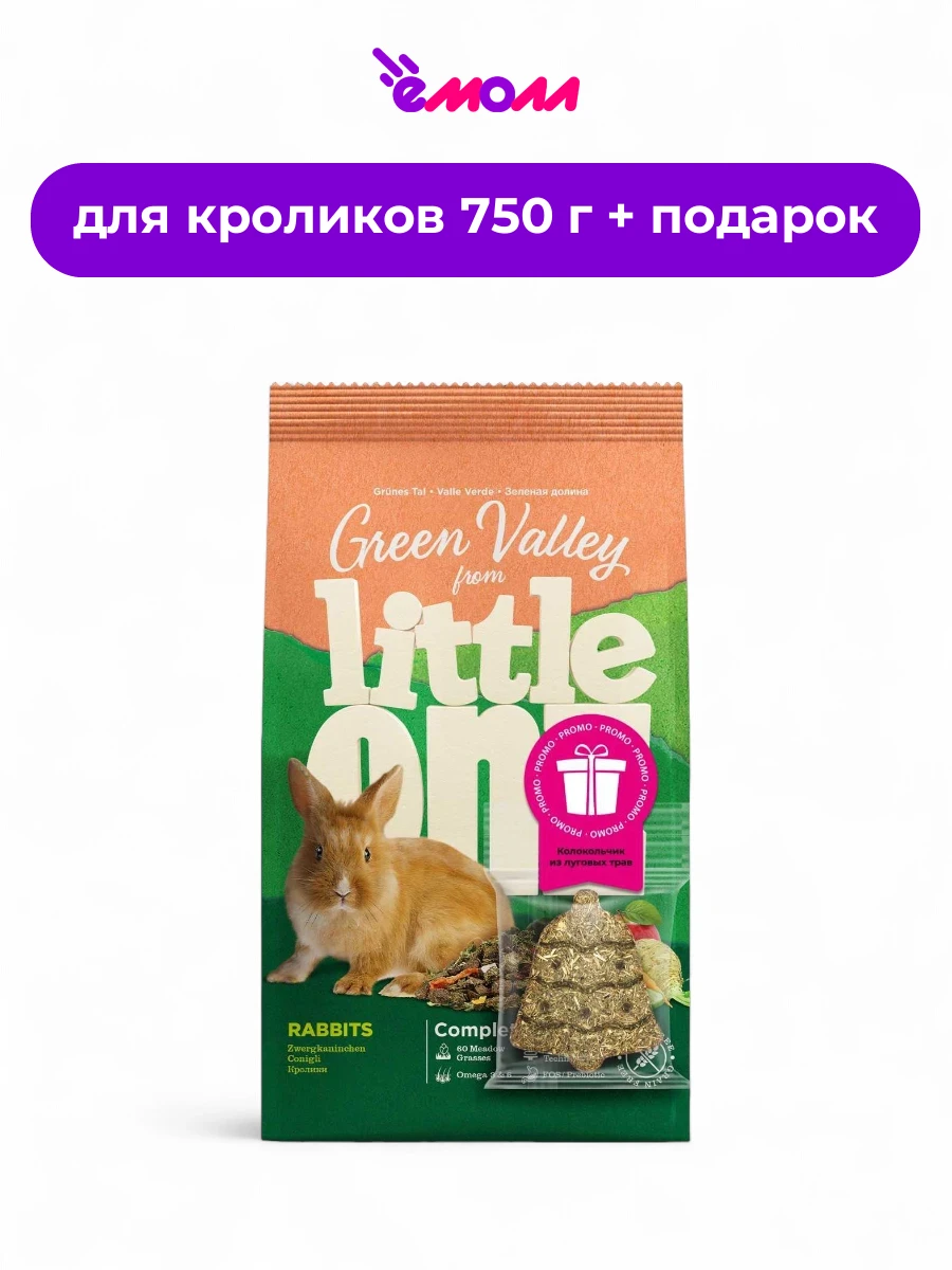 Little One корм для кроликов из разнотравья с подарком Зеленая долина 750 г + 24 г