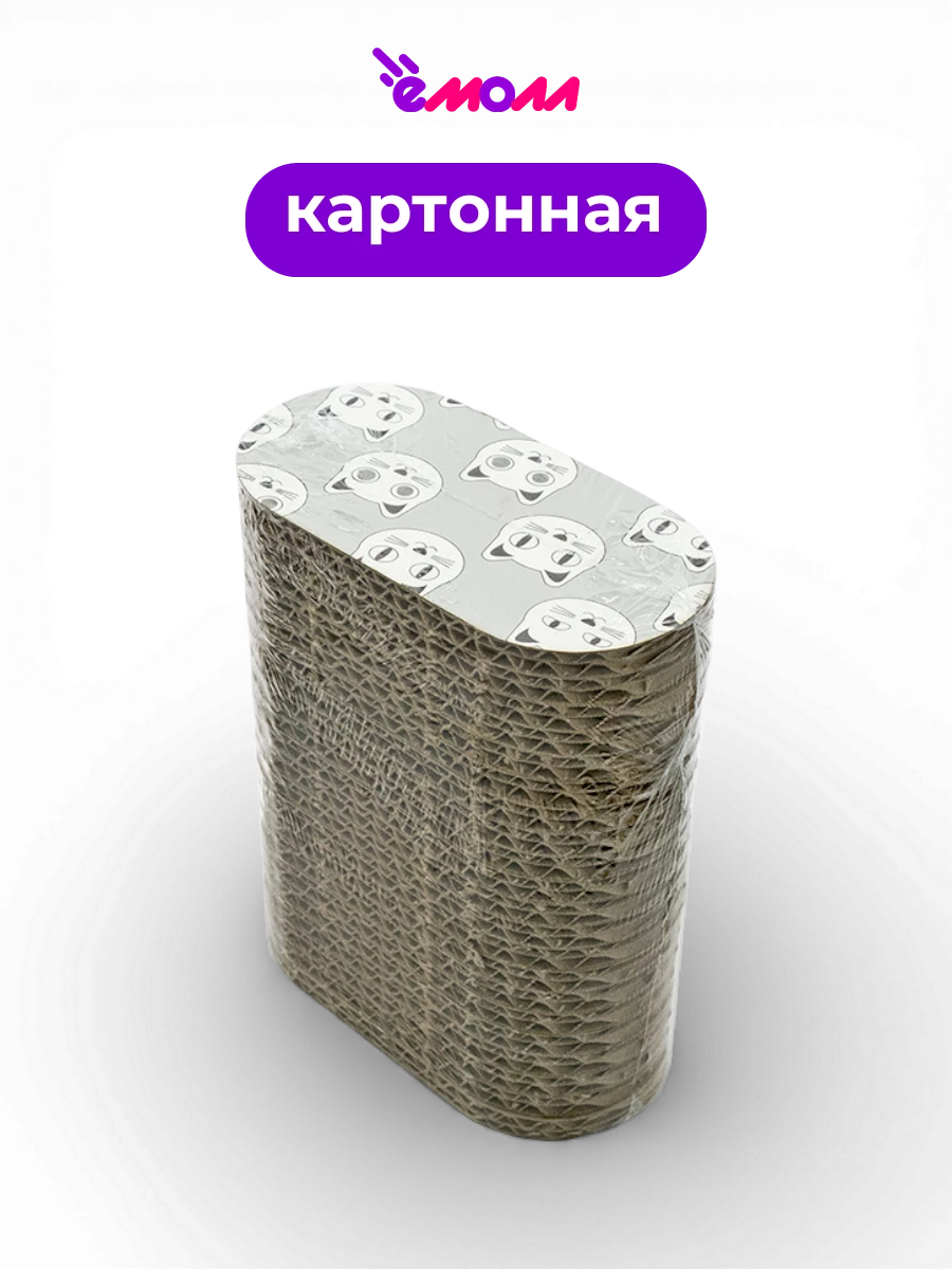 Компактная когтеточка-игрушка изготовлена из плотного гофрокартона — материал приятен на ощупь для кошки и эффективно стачивает когти, помогая защитить мебель и обои от повреждений.