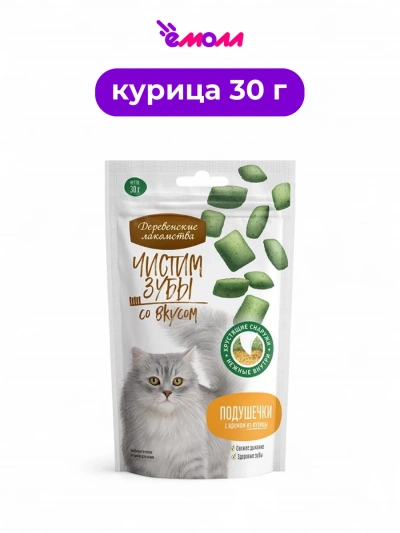 Деревенские лакомства лакомство для кошек подушечки с кремом из курицы Чистим зубы 30 г