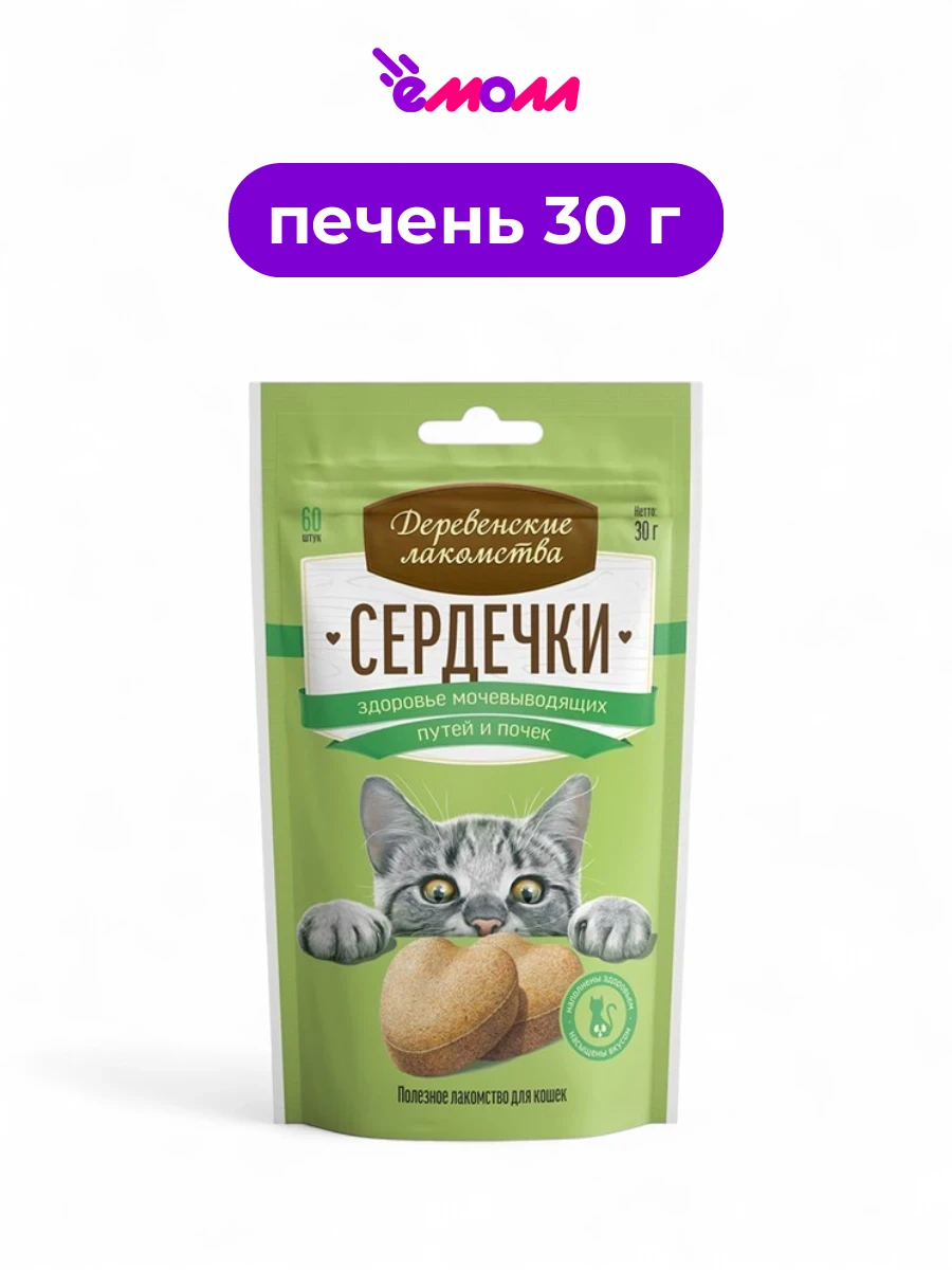 Деревенские лакомства лакомство для кошек сердечки для здоровья мочевыводящих путей и почек 30 г