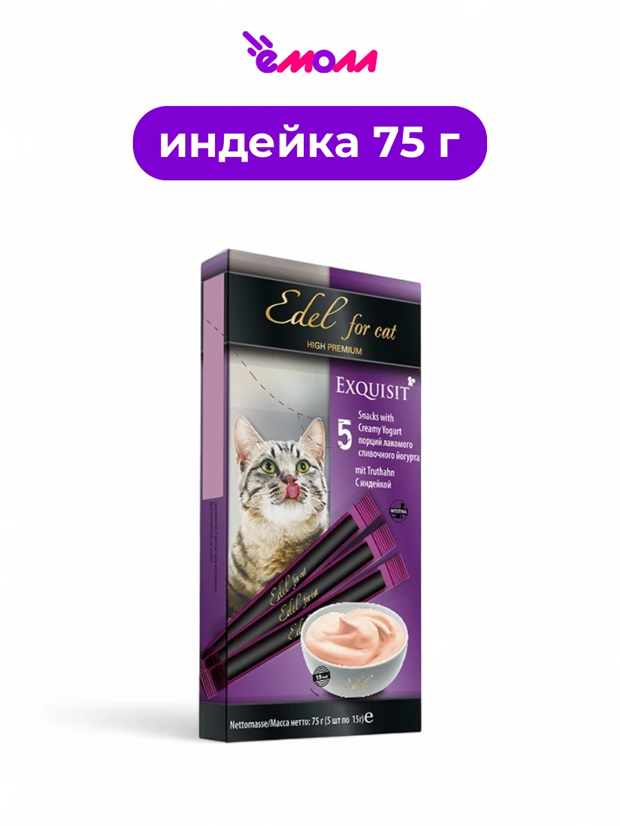 Edel лакомство для кошек крем суп сливочный йогурт с индейкой 5 шт по 15 г