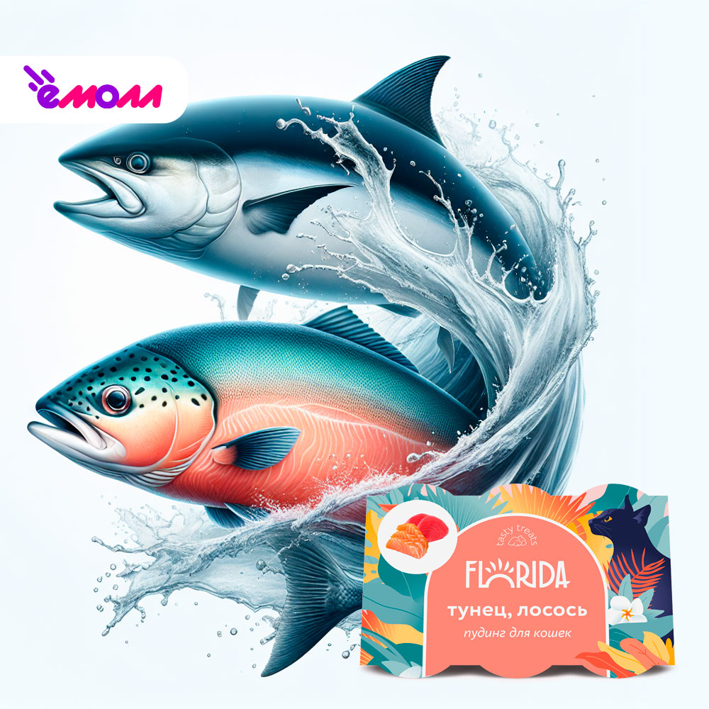 Florida лакомства пудинг для кошек с тунцом и лососем, 6 x 22 г