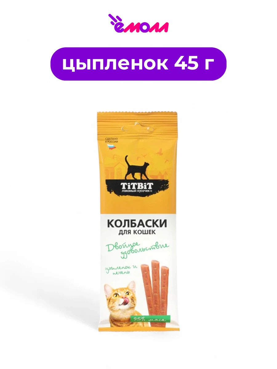 Титбит колбаски для кошек с цыпленком и печенью Двойное удовольствие 45 г