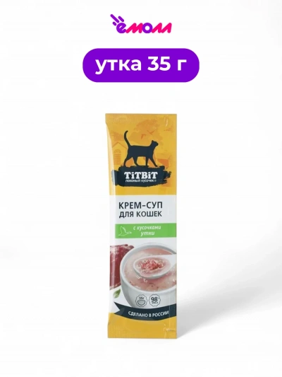 Крем-суп для кошек с кусочками утки от Титбит — это изысканное лакомство, созданное для гурманов среди домашних питомцев. В отличие от других продуктов, этот крем-суп сочетает нежную консистенцию с аппетитными кусочками утки, обеспечивая насыщенный вкус и аромат, который понравится даже самым привередливым кошкам.