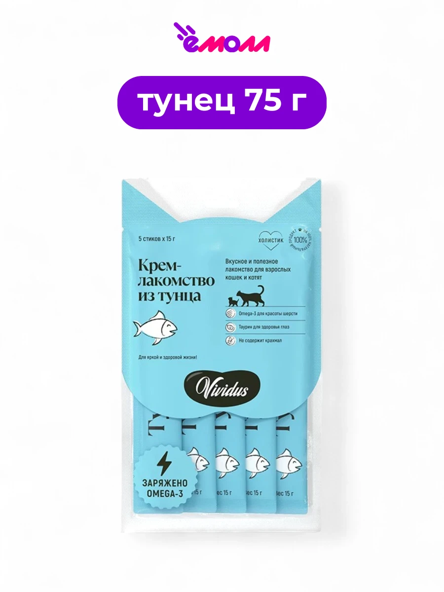 Vividus кремовое лакомство для кошек и котят тунец 5 шт по 15 г