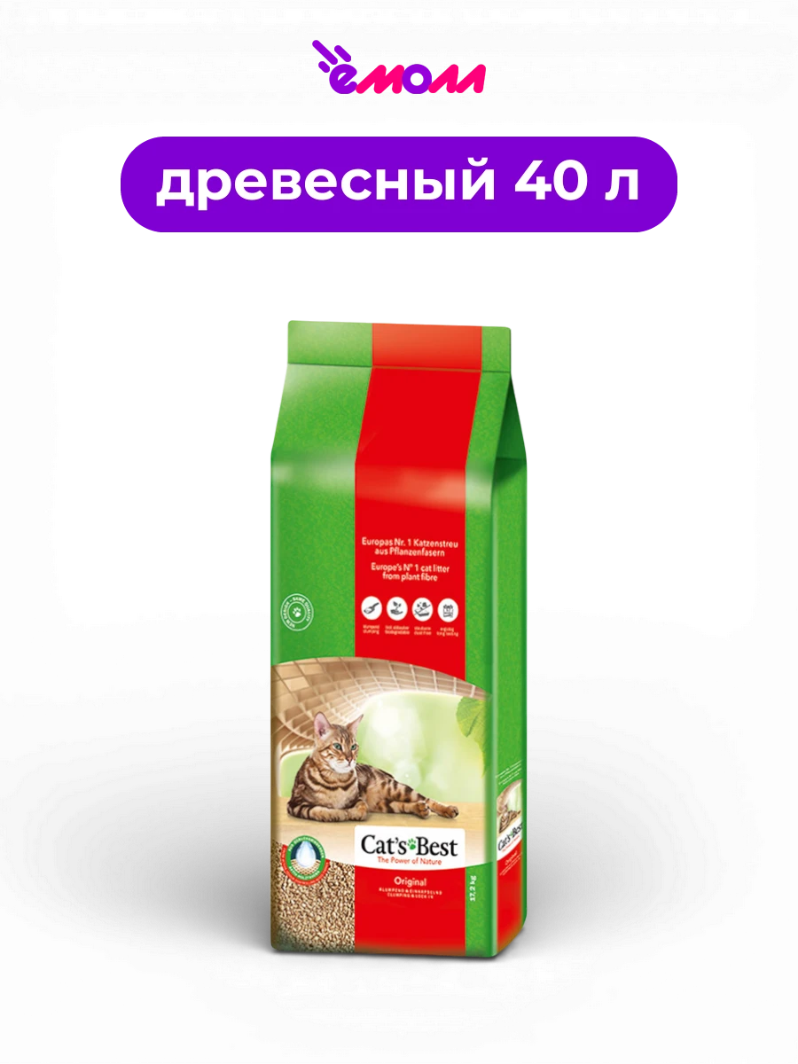 Cat's Best наполнитель для кошачьих туалетов древесный комкующийся Original 40 л 17,2 кг