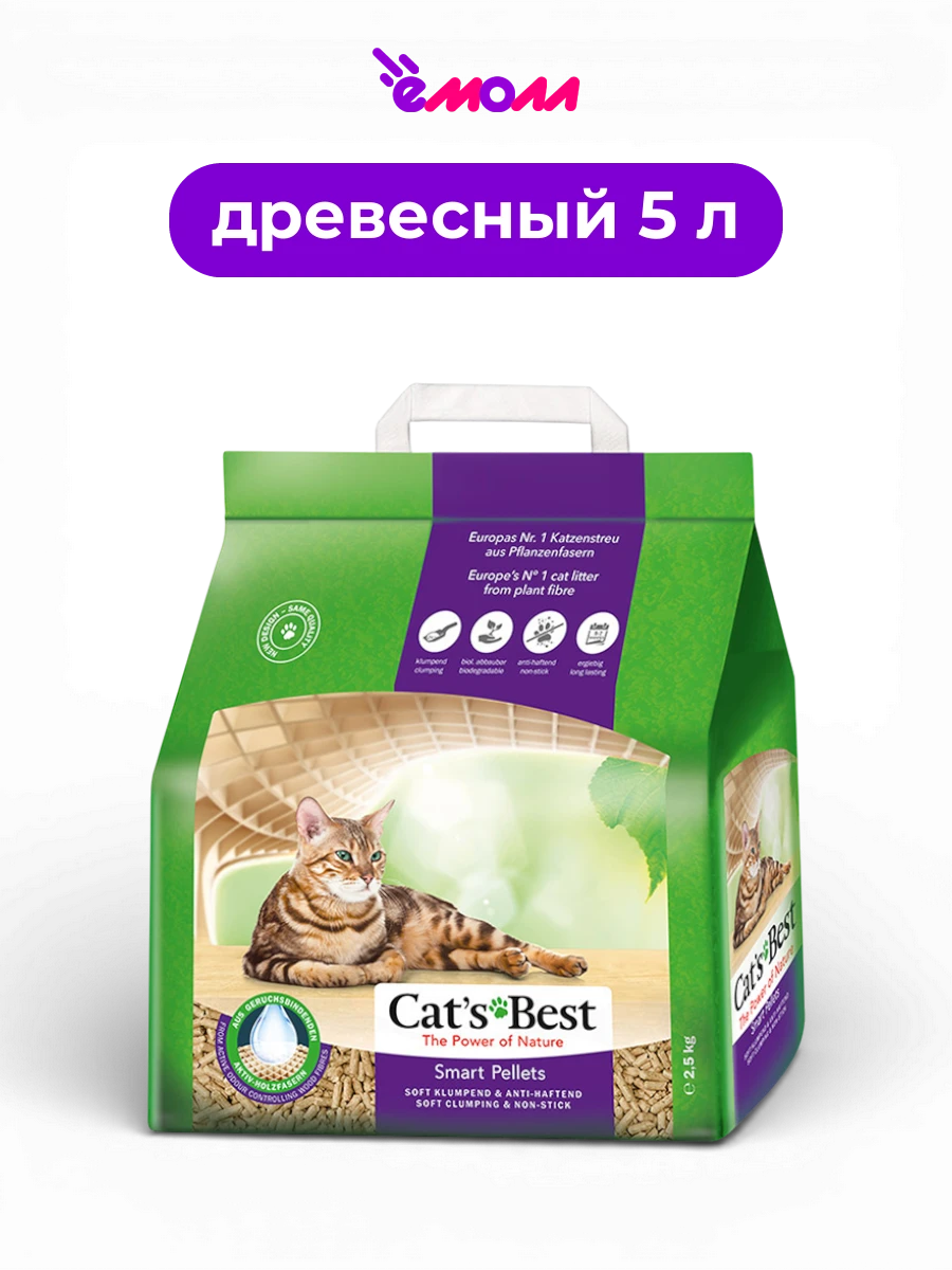 Cat's Best наполнитель для кошачьих туалетов древесный комкующийся Smart Pellets 5 л 2,5 кг