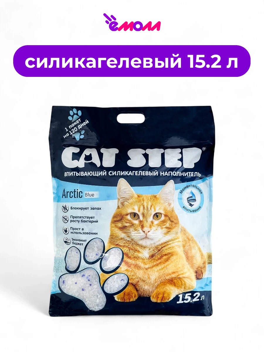 - Экономия времени: Не требуется ежедневно удалять комки и добавлять свежий наполнитель. Достаточно засыпать CAT STEP Arctic в лоток один раз в месяц.