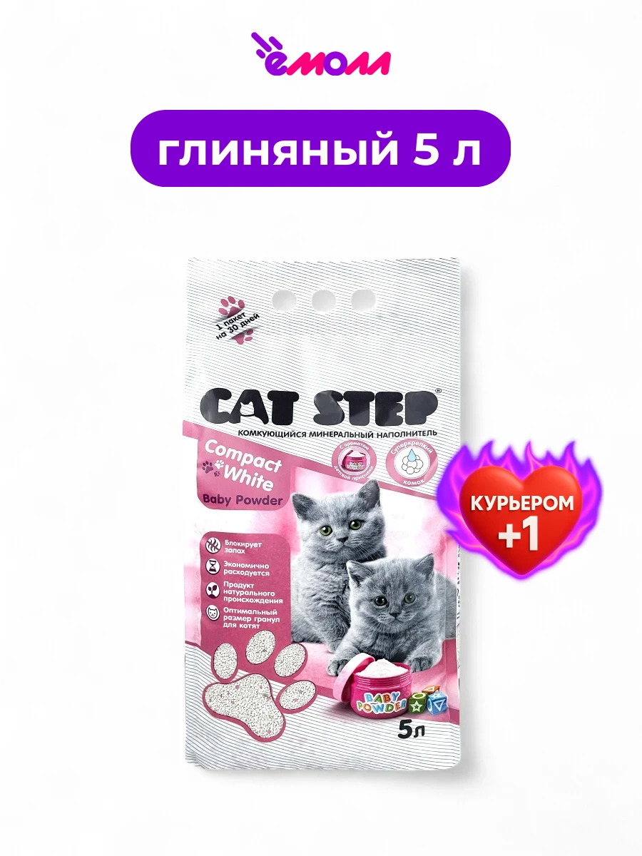 Cat Step комкующийся наполнитель для котят Compact White Baby Powder 5 л