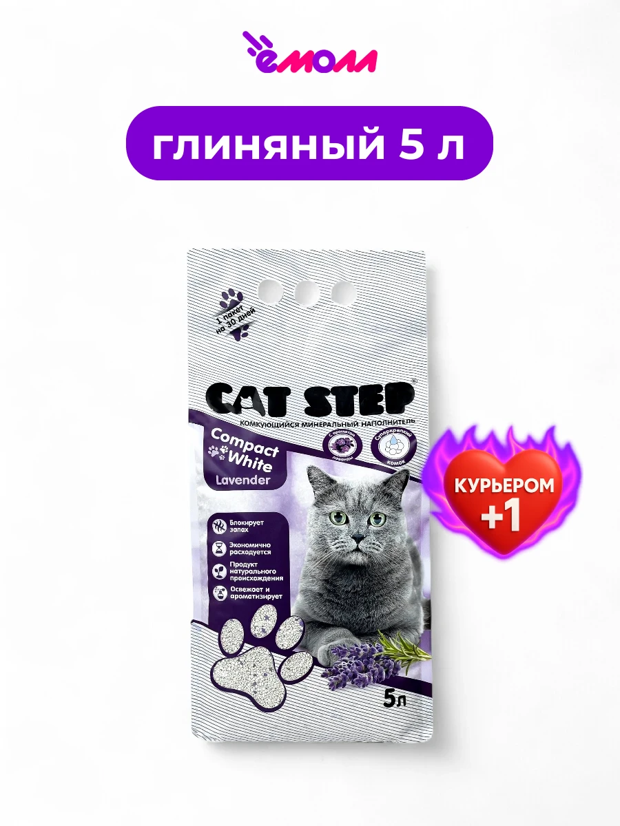Cat Step комкующийся наполнитель для кошек Compact White Lavеnder 5 л