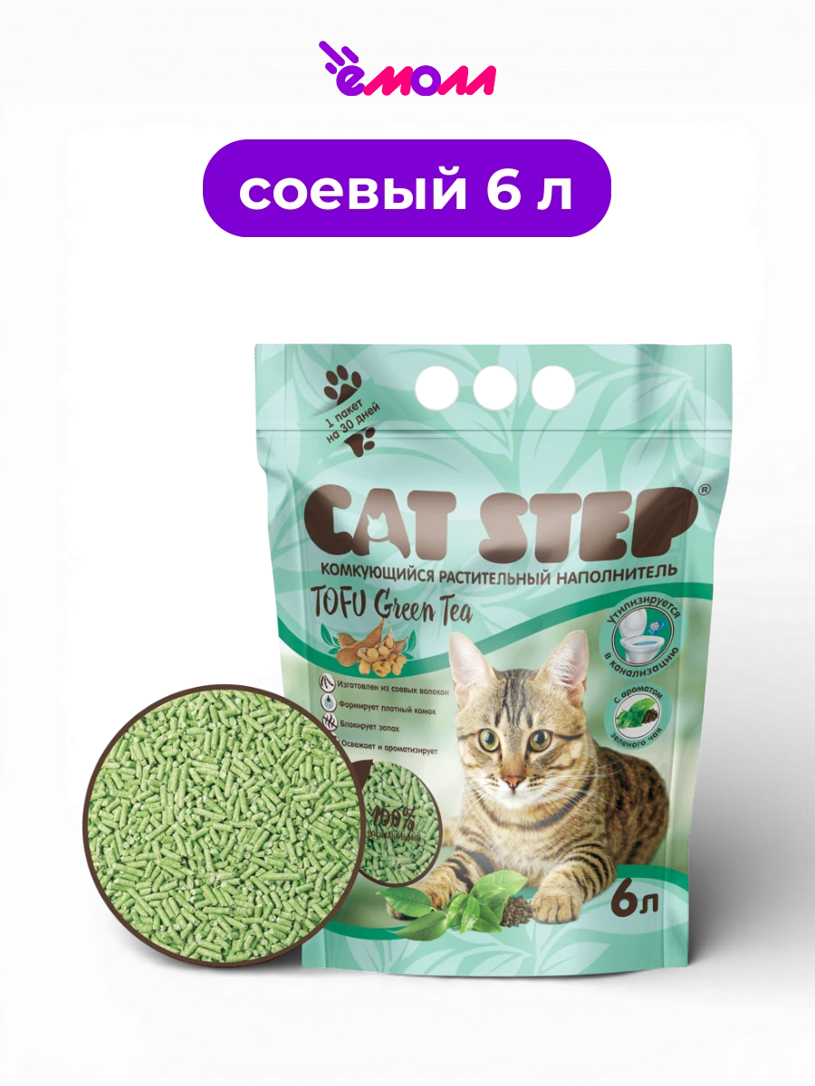 Cat Step наполнитель комкующийся растительный Tofu Green Tea 6 л