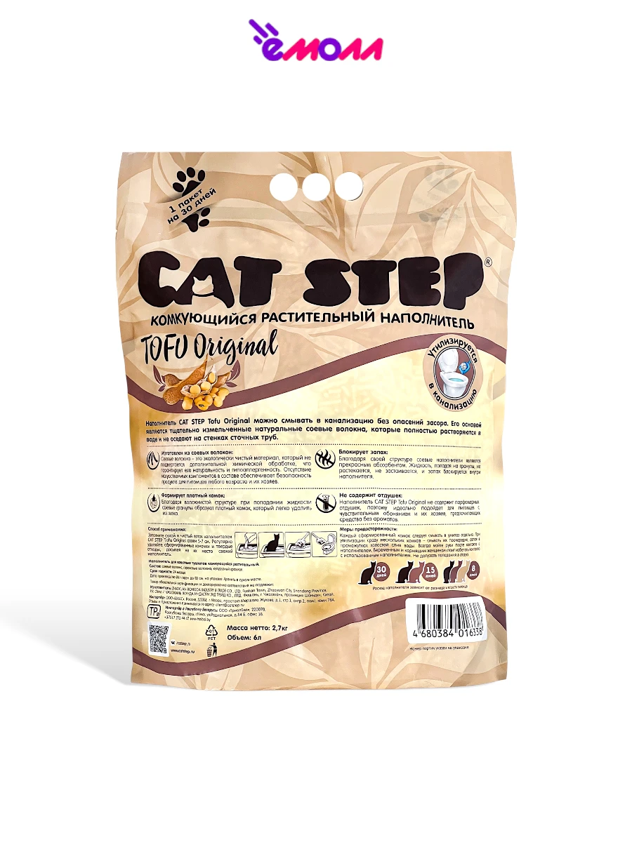 Выбирая Cat Step Tofu Original, вы выбираете не только качественный продукт для своего питомца, но и делаете вклад в сохранение окружающей среды. Позаботьтесь о комфорте вашей кошки и чистоте вашего дома с этим высококачественным наполнителем.