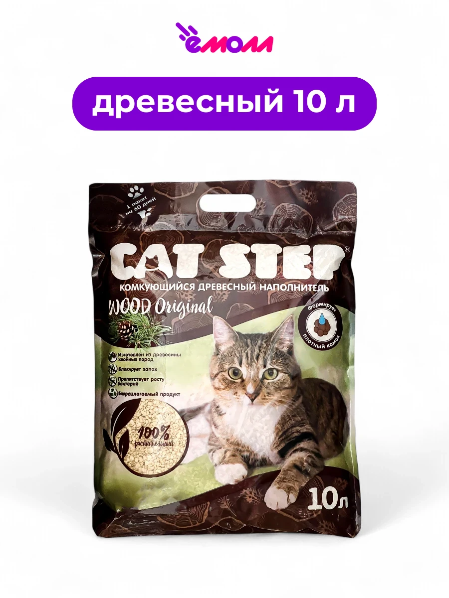 Cat Step комкующийся растительный наполнитель для кошек Wood Original 10 л