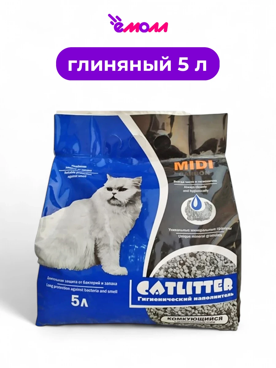Catlitter наполнитель для кошачьего туалета комкующийся Carbon MIDI 5 л