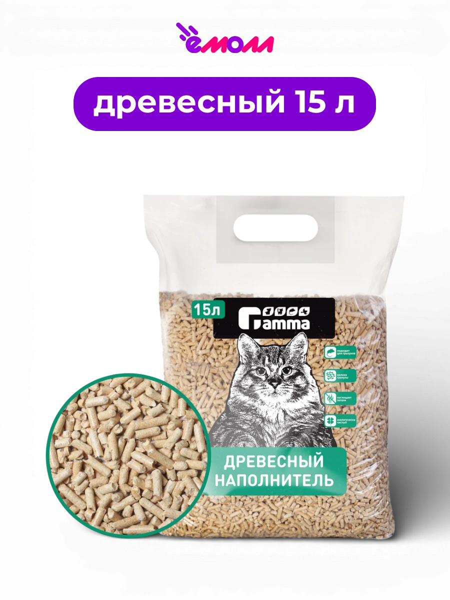 Gamma наполнитель впитывающий древесный мелкие гранулы 15 л