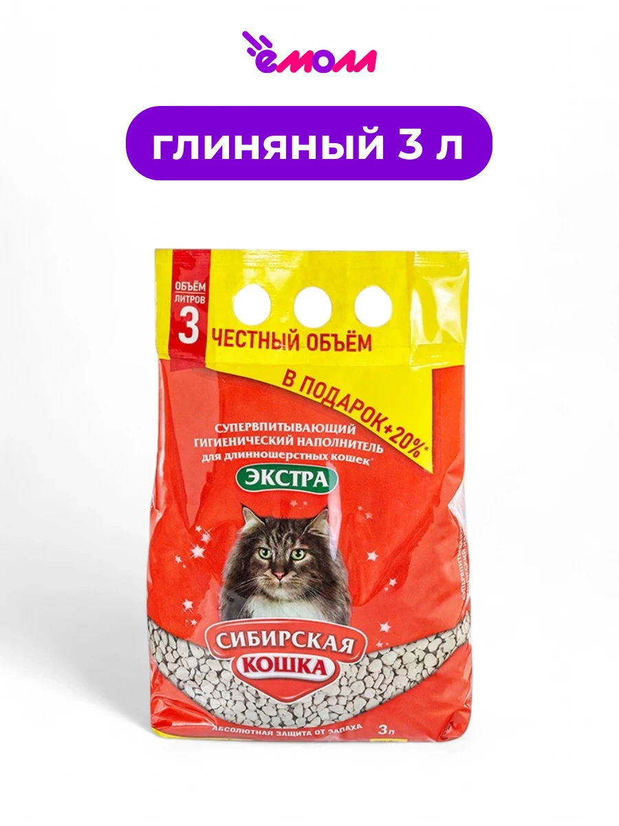 Сибирская кошка наполнитель для длинношерстных кошек Экстра 3 л +20%