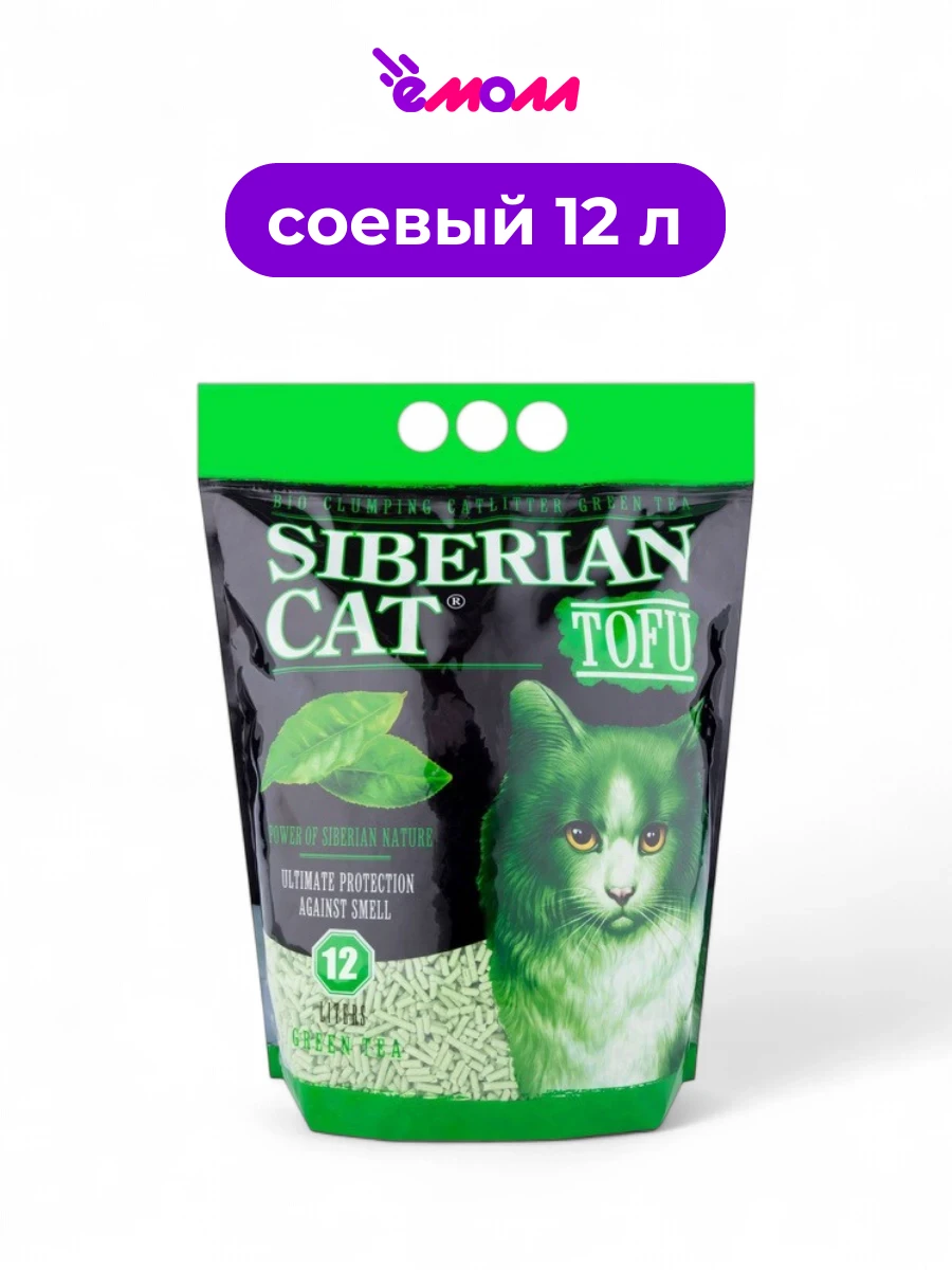Сибирская кошка наполнитель для кошачьего туалета биоразлагаемый комкующийся Тофу Зеленый чай 12 л