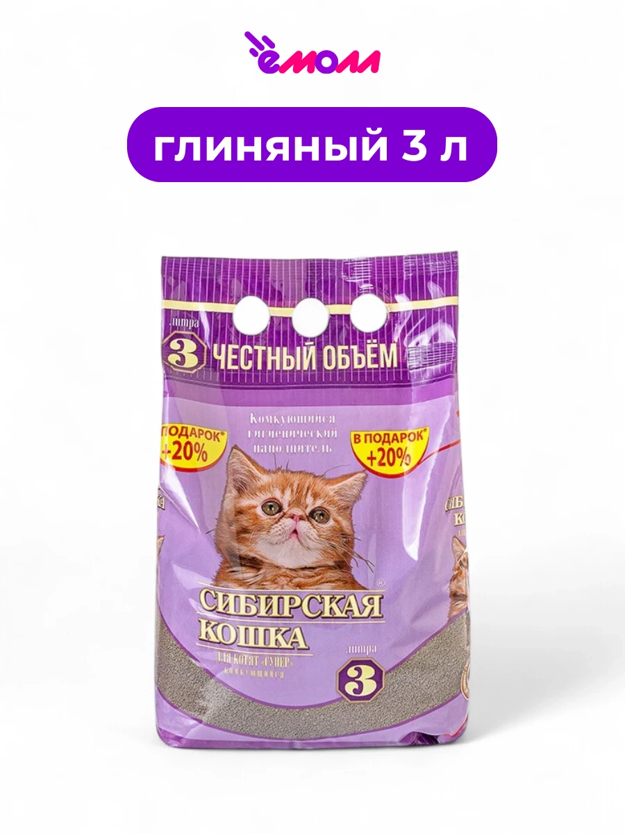 Сибирская кошка наполнитель для котят комкующийся Супер 3 л +20%