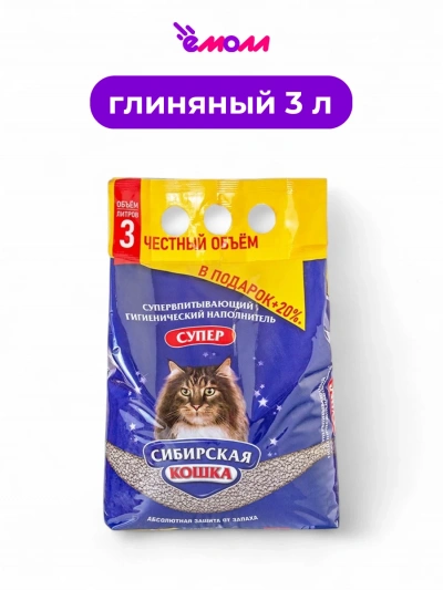 Сибирская кошка наполнитель комкующийся Супер 3 л +20%