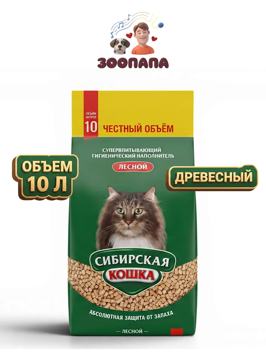 Сибирская кошка супервпитывающий древесный наполнитель для кошачьего лотка Лесной 10л