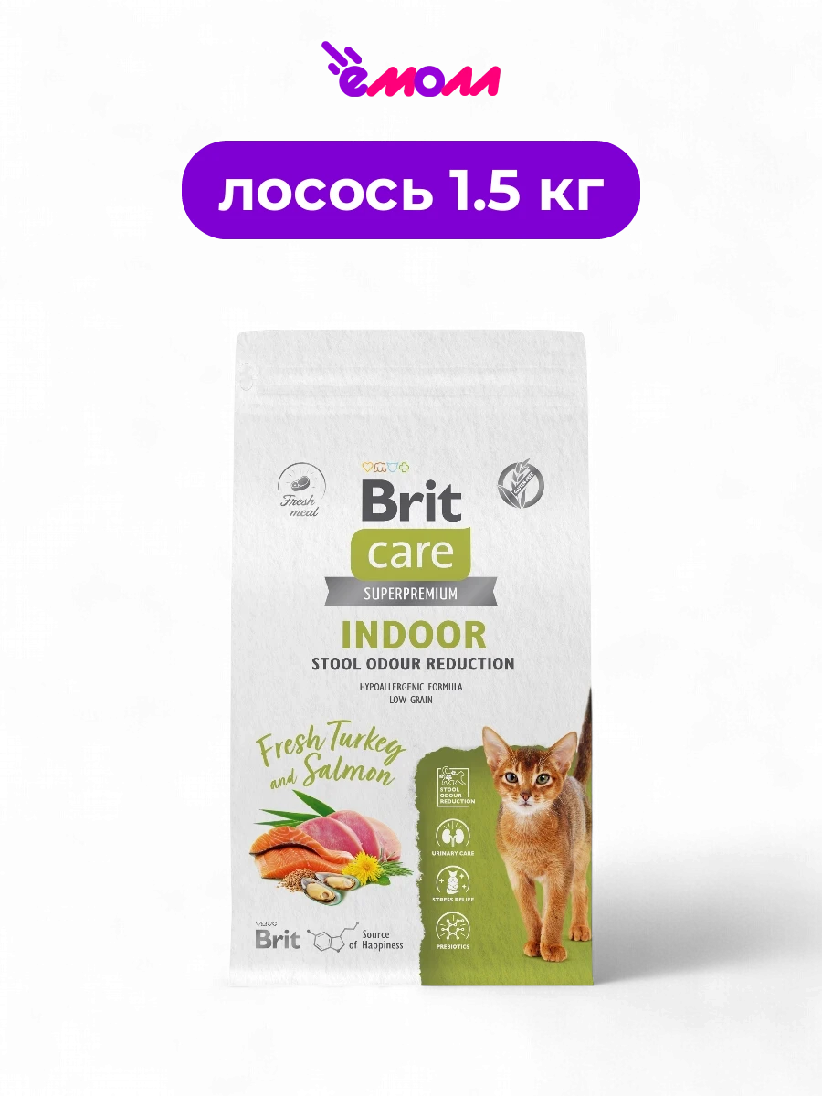 Брит Кеа сухой корм с индейкой и лососем для взрослых кошек Cat Indoor Stool Odour Reduction 1.5 кг