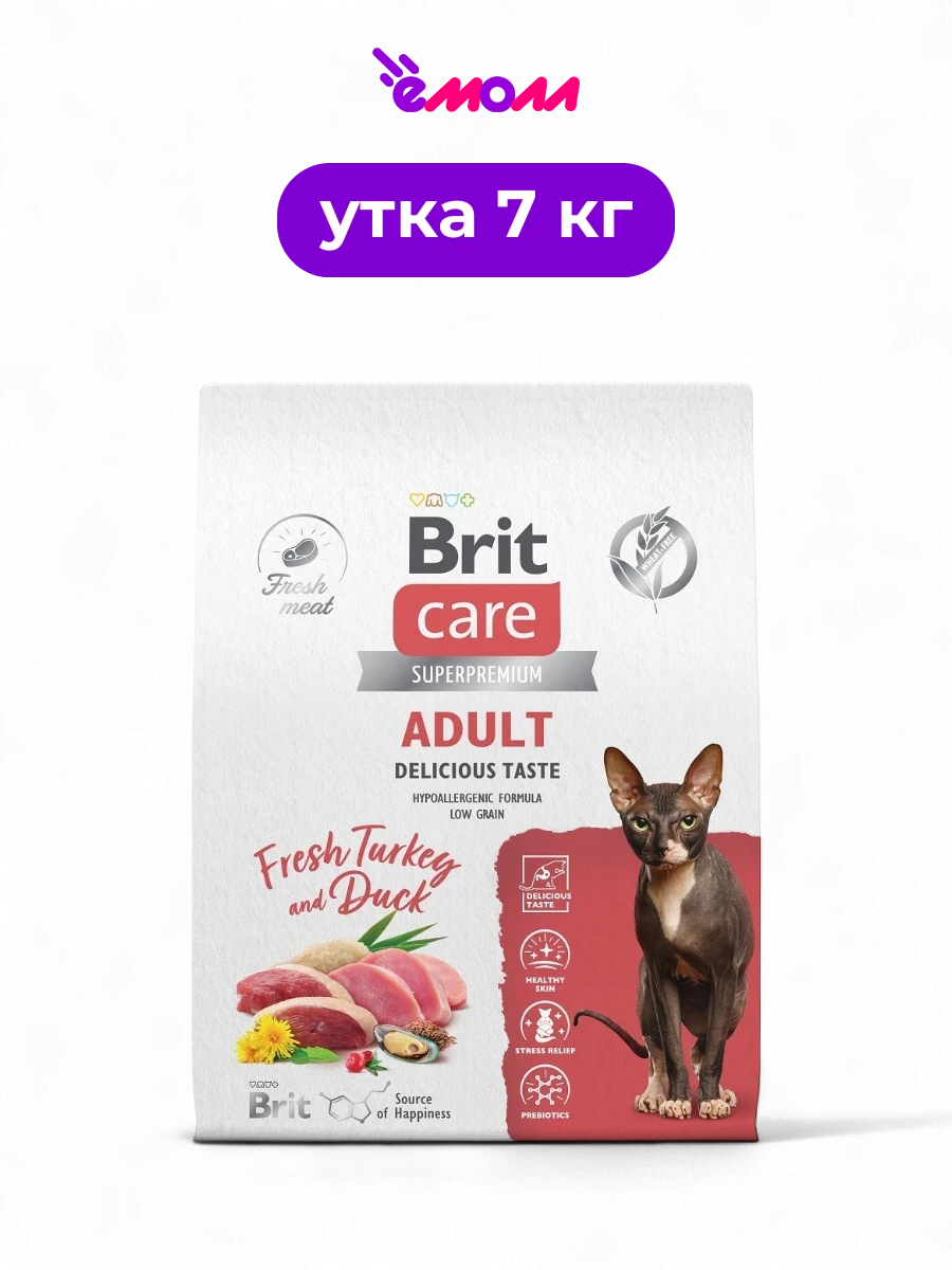 Брит Кеа сухой корм с индейкой и уткой для взрослых привередливых кошек Cat Adult Delicious Taste 7 кг