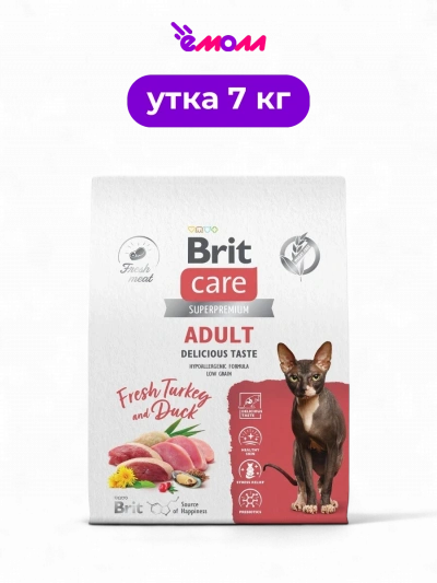 Сухой корм BRIT CARE — это нежное сочетание мясных ингредиентов. Индейка и утка составляют мясной микс, разработанный специально для привередливых кошек, которые избирательно подходят к выбору пищи.