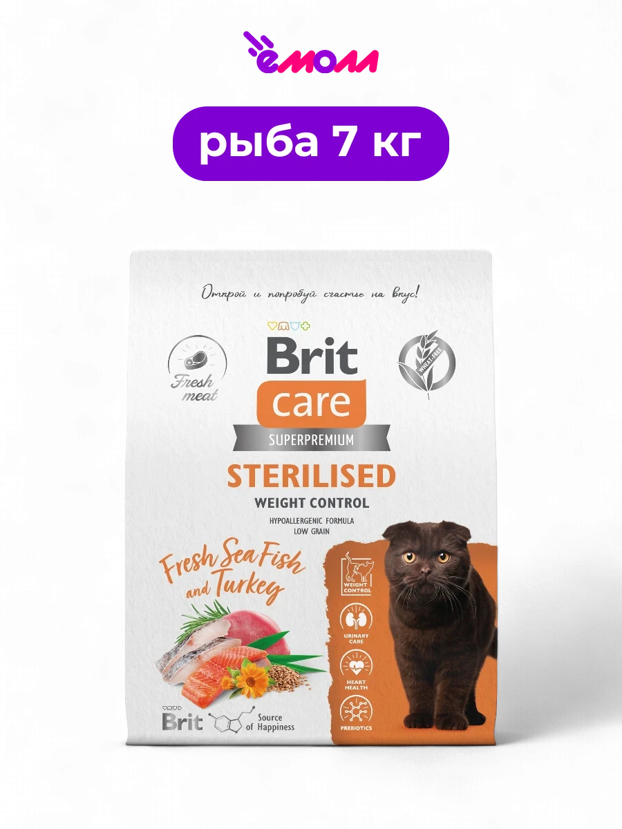 Брит Кеа сухой корм с морской рыбой и индейкой для стерилизованных кошек Cat Sterilised Weight Control 7 кг