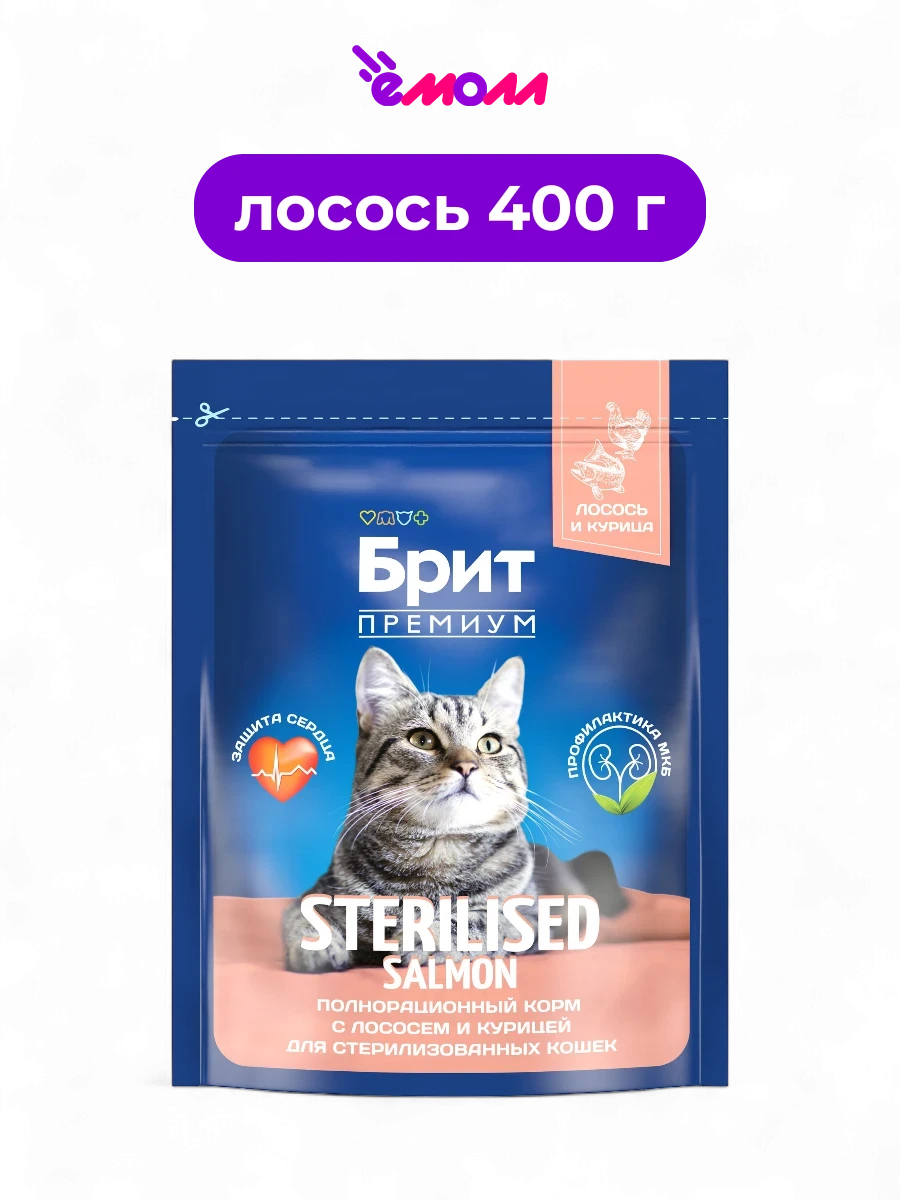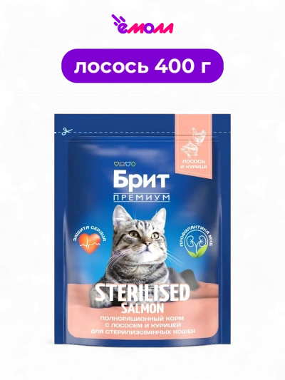 Брит Премиум сухой корм для кошек с лососем и курицей Cat Sterilised Salmon and Chicken 0.4 кг