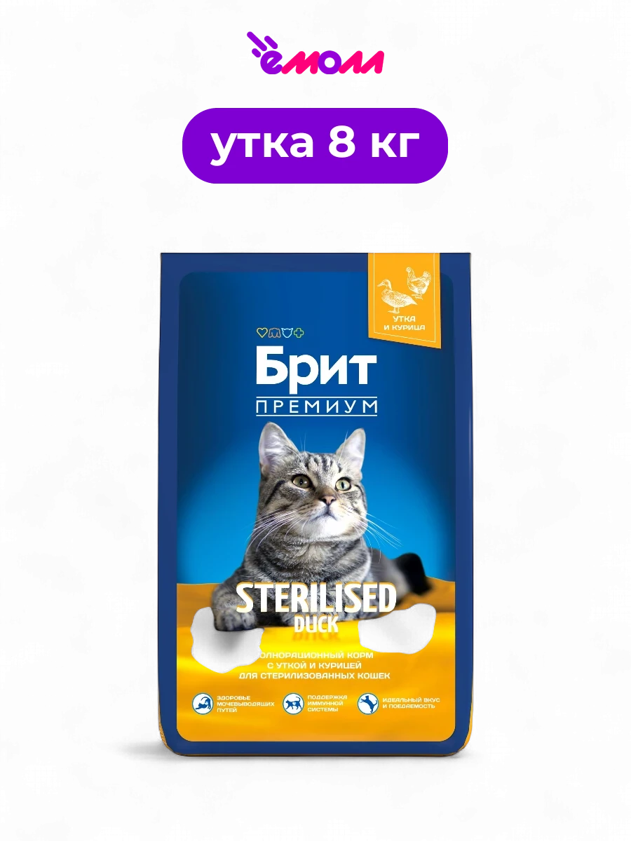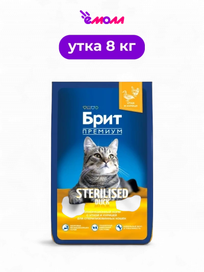 Брит Премиум сухой корм для стерилизованных кошек Cat Sterilised Duck and Chicken 8 кг