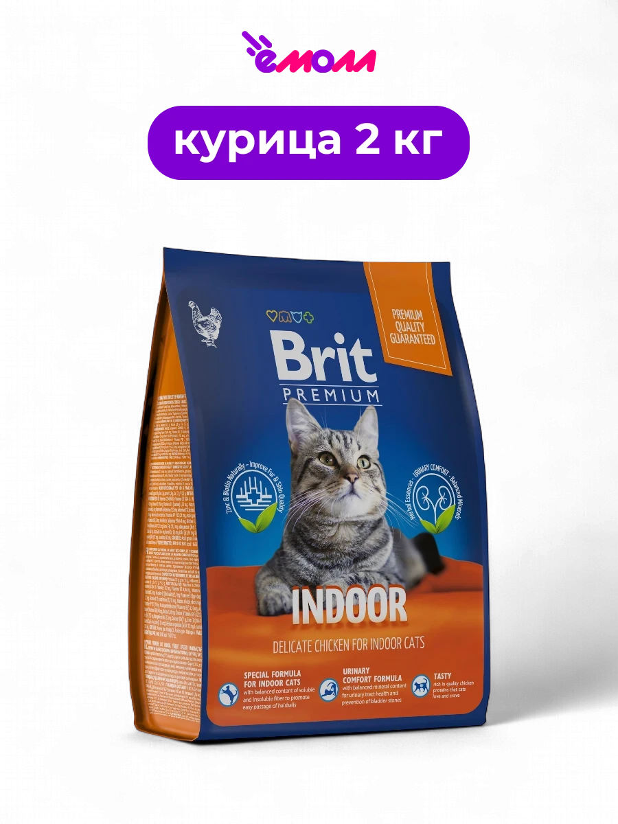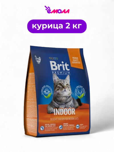 Брит Премиум сухой корм с курицей для кошек домашнего содержания Cat Indoor 2 кг