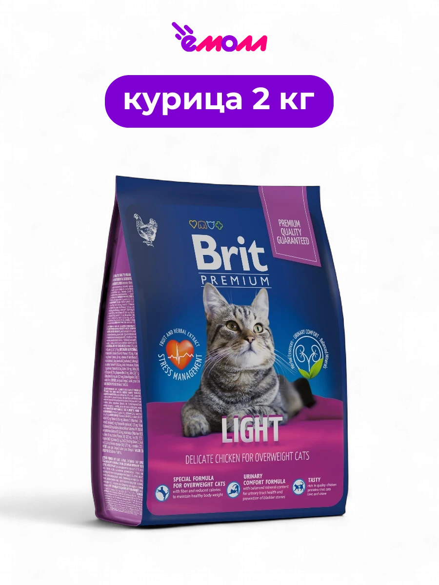 Брит Премиум сухой корм с курицей для кошек с избыточным весом Cat Light 2 кг