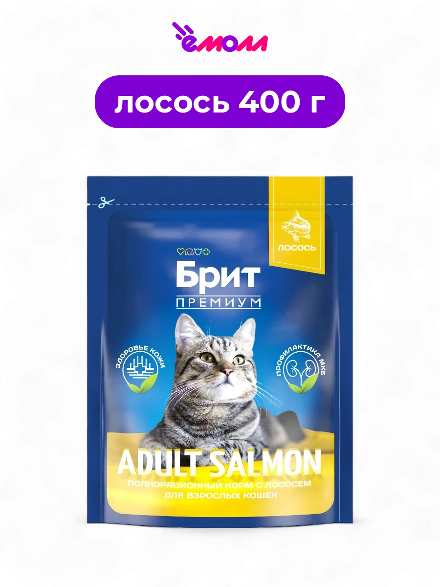 Брит Премиум сухой корм с лососем для взрослых кошек Cat Adult Salmon 0.4 кг