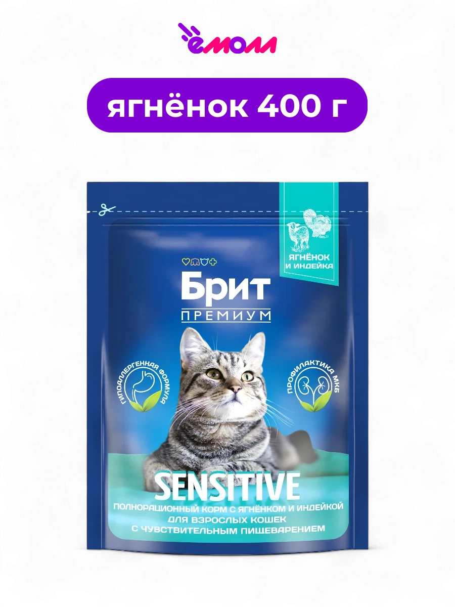 Брит Премиум сухой корм с ягненком и индейкой для кошек Cat Sensitive 0.4 кг