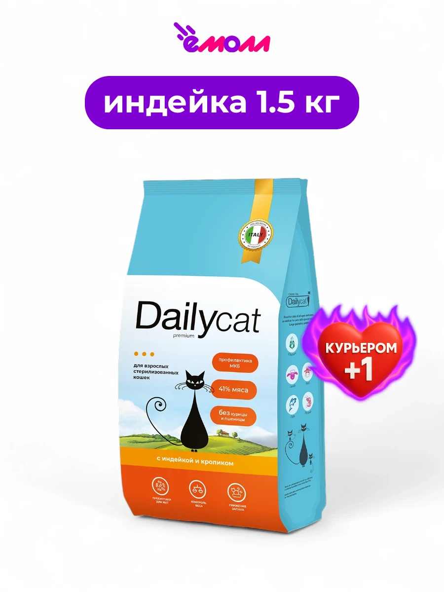 Dailycat сухой корм для стерилизованных кошек с индейкой и кроликом 1.5 кг