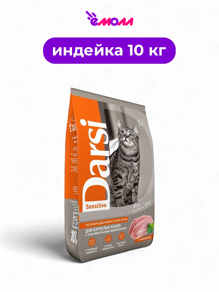 Darsi сухой корм для кошек индейка Sensitive 10 кг