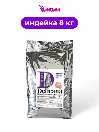 В отличие от других моделей корма Delicana, этот вариант с индейкой специально адаптирован для стерилизованных кошек, учитывая их особые потребности в питательных веществах и контроле веса.