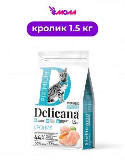 Delicana сухой корм для кошек кастрированных и стерилизованных с кроликом 1.5 кг