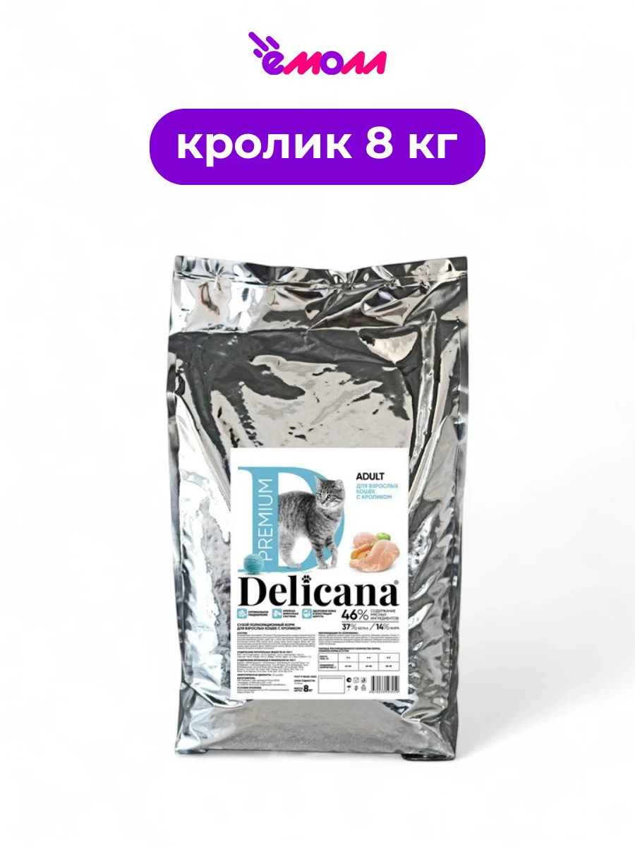 Delicana сухой корм для кошек кролик 8 кг