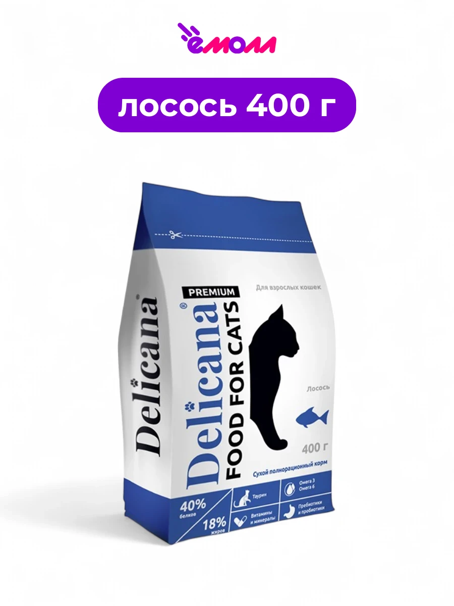 Delicana сухой корм для кошек лосось 0,4 кг