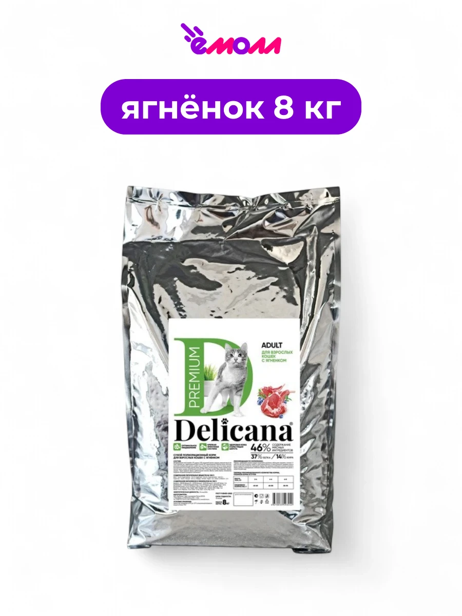 Delicana сухой корм для кошек ягненок 8 кг