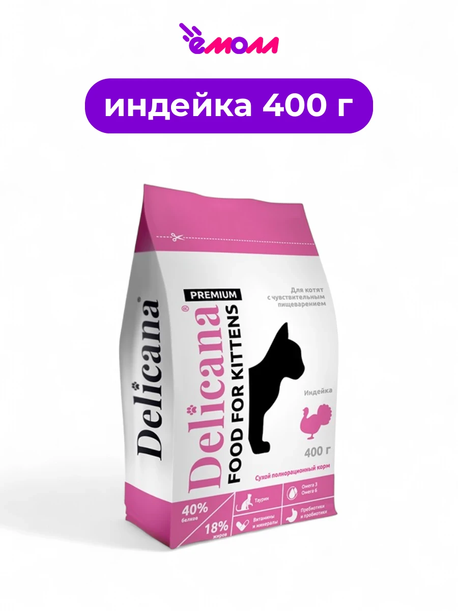 Delicana сухой корм для котят с чувствительным пищеварением с индейкой 0.4 кг