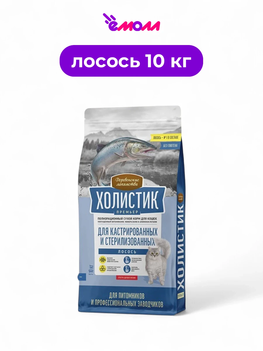 Деревенские лакомства сухой корм для кастрированных и стерилизованных кошек Holistic Premier лосось 10 кг