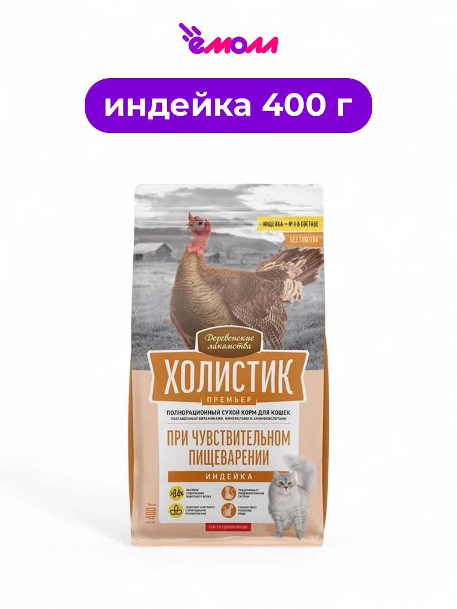 Деревенские лакомства сухой корм для кошек с чувствительным пищеварением Holistic Premier индейка 400 г