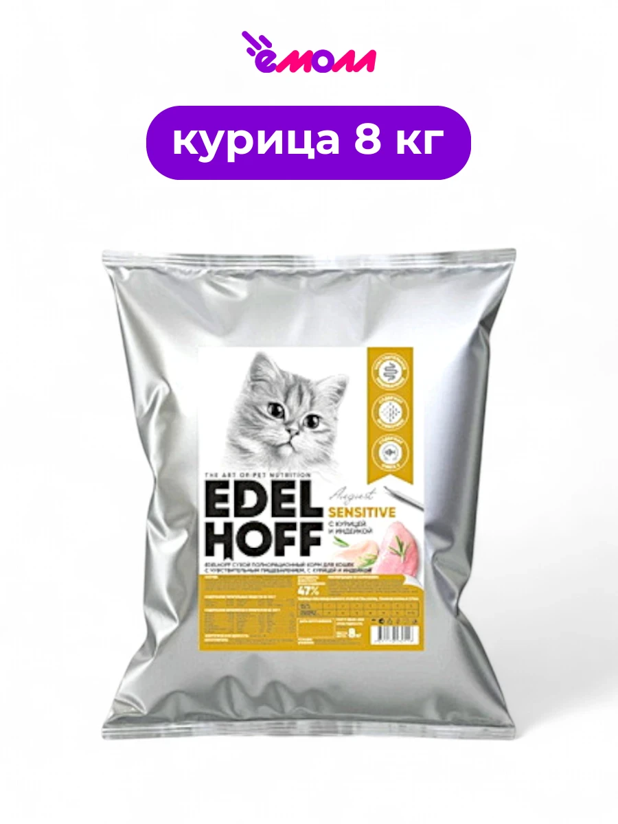Edelhoff сухой корм для кошек с чувствительным пищеварением курица индейка 8 кг