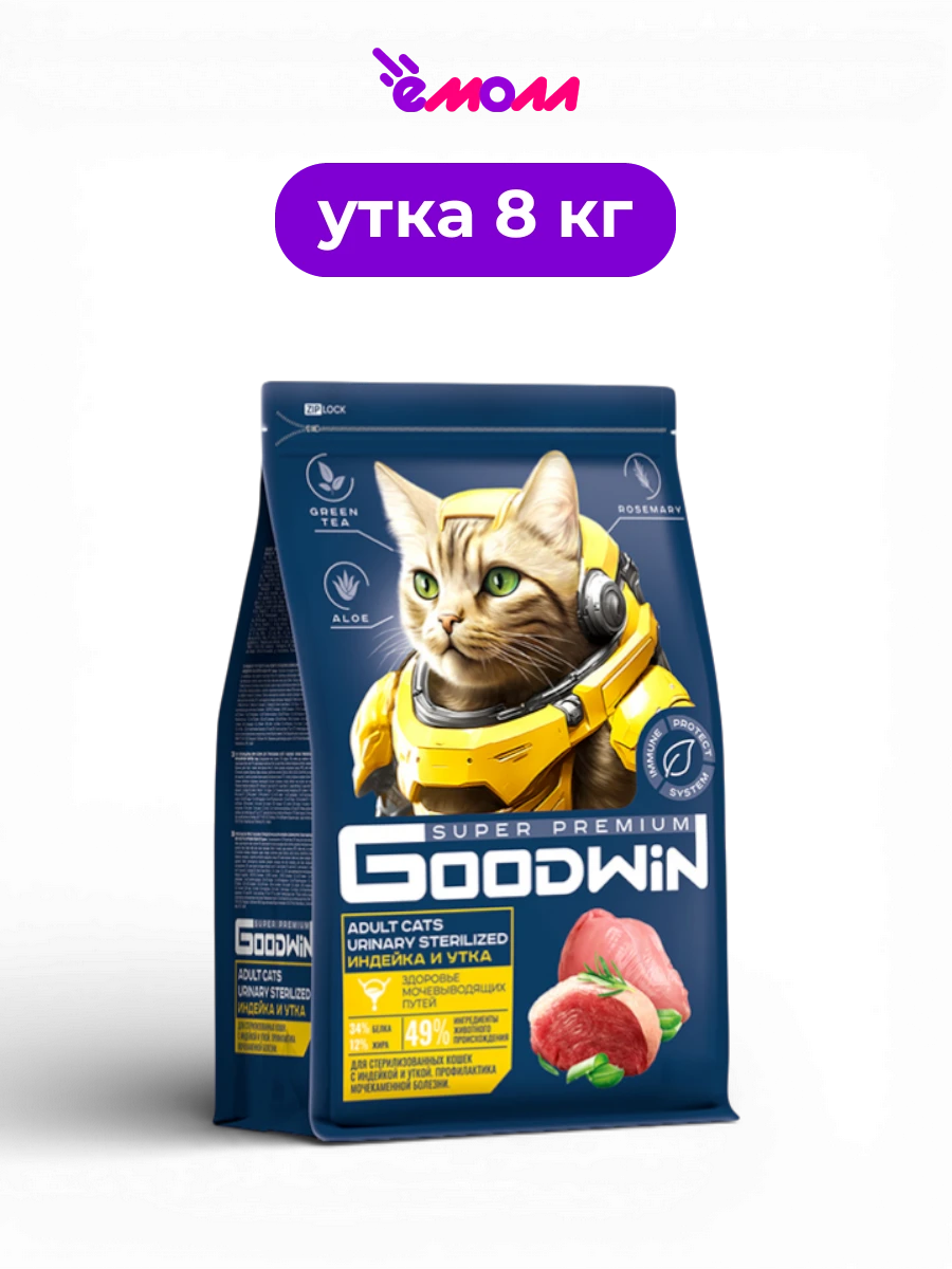 Goodwin сухой корм для стерилизованных кошек для профилактики мочекаменной болезни с индейкой и уткой 8 кг